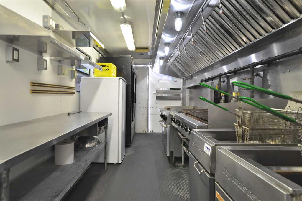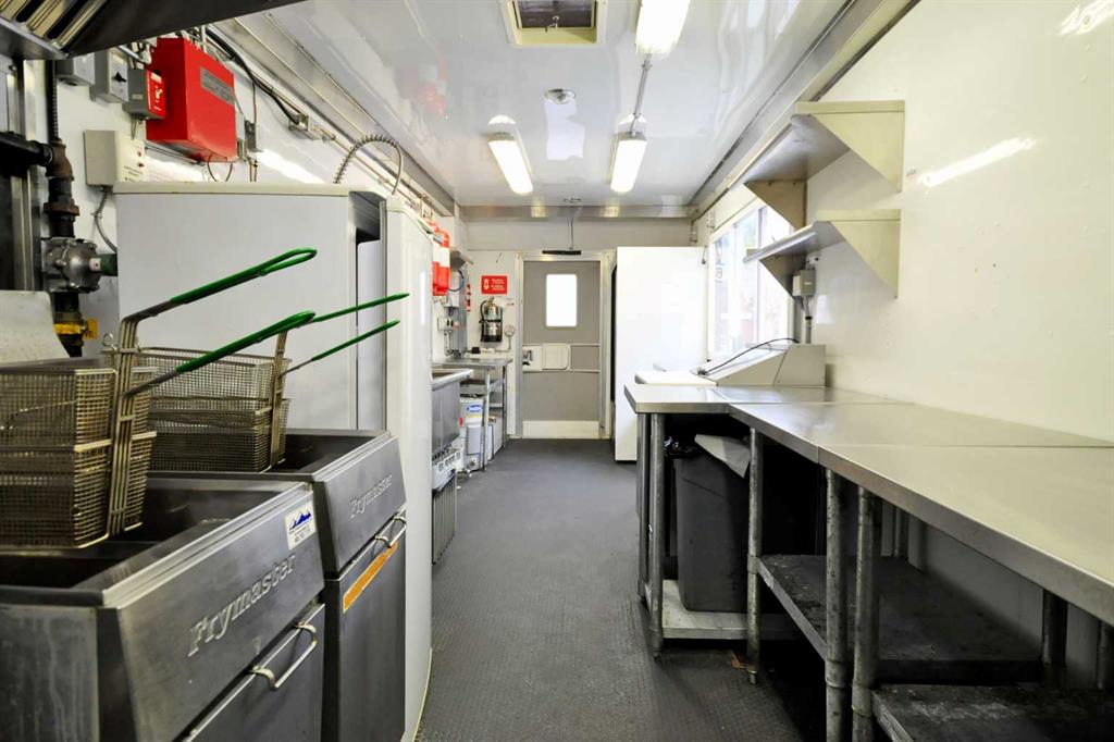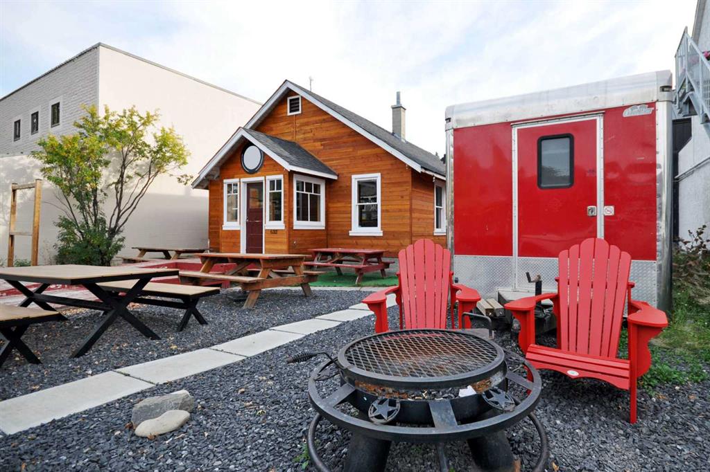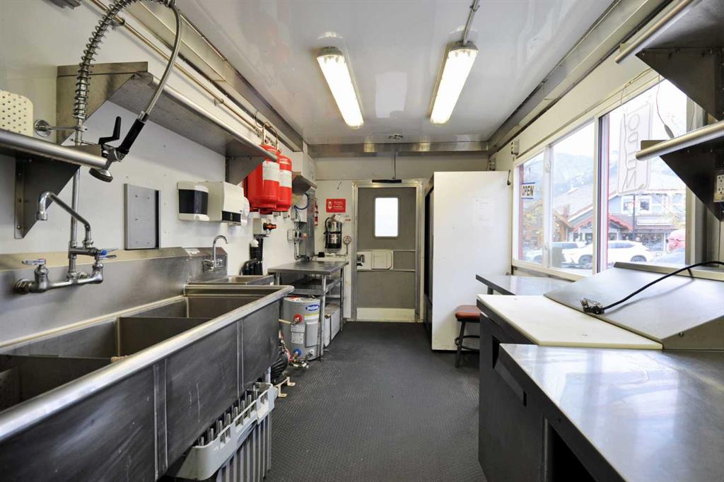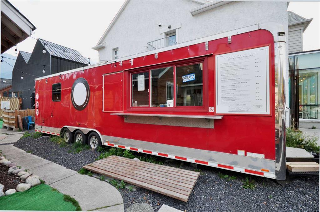 Food truck + yard venue on Main Street Canmore - this offering is for an assignment of leasehold interest and business assets which includes a 32-ft 2014 food truck trailer (converted 2017), yard improvements, and TWO existing sub-tenant agreements. The truck features an amazing, fully loaded commercial kitchen, complete with 10-ft hood, a flat-top grill with oven below, two large gas burners, a six-burner grated grill, two deep fryers with four baskets, plus ample refrigeration, prep, storage, and working space to support a variety of culinary delights and/or artists. Situated on a 6,587sf lot, the outdoor yard is tucked behind the original 915sf, 1910 cabin with both front street and shared washroom and backyard access. The yard is set for gathering, dining, and events with two commercial pergolas, a stage, and multiple seating areas. The yard offers a seasonal multi-pad layout for the food truck, one existing sea can sub-tenant (confirmed and wanting to stay), and an existing retail tenant in the original 1910 cabin. The cabin provides shared access for all tenants to the three new washrooms with access ramp, via the yard. The second sea can operating as a licensed bar (un-tenanted) could be included. Absolute net lease at $3,315/mo + gst; property taxes approx. $1,000/mo. (less rent from two subtenants). Leasehold to Dec 31, 2028; assignment subject to landlord approval.